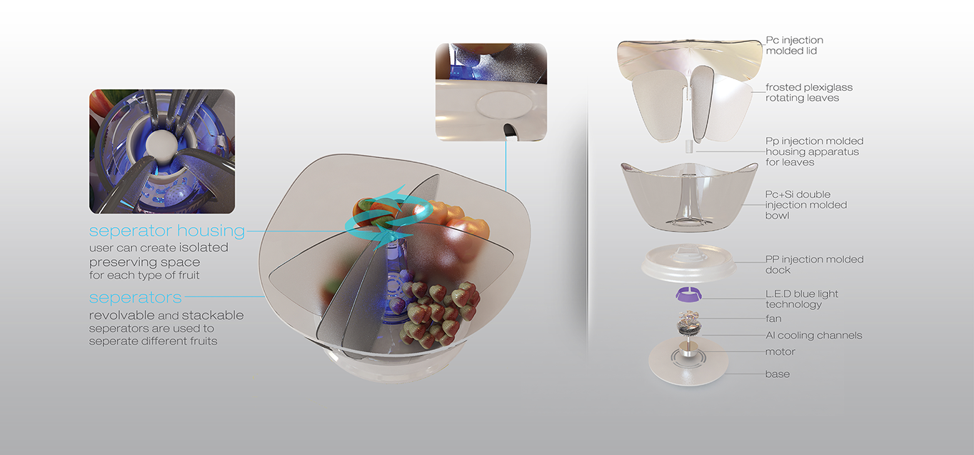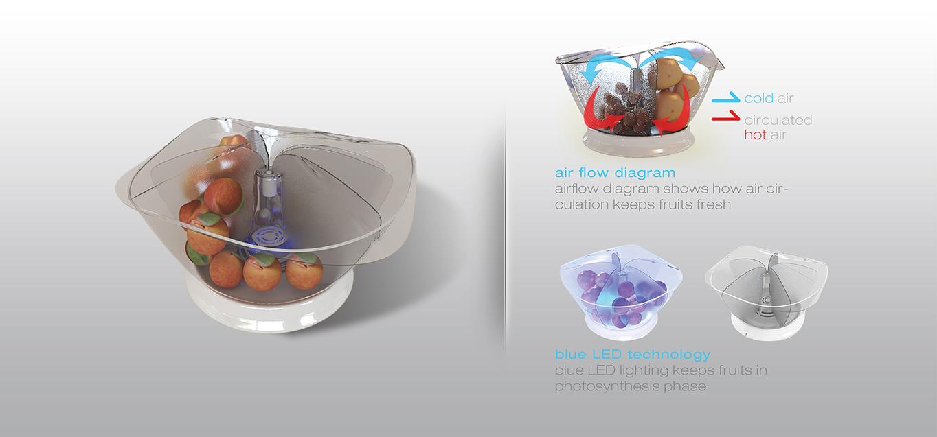 meyva is a fruit preserving system, that keeps fruits in photosynthesis phase by using blue led technology designed for