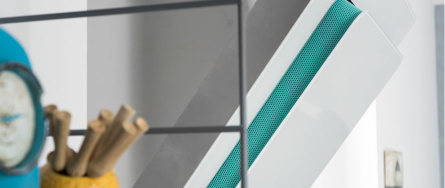 slide-down high performance ensured by the innovative integrated guided full surface extraction system wavy seamless architectural integration curvedge maximum balance and safety with seamless design flow-in seamless integration of cooktop and range hood skydoor comprehensive virtual window experience with ceiling extraction and daylighting