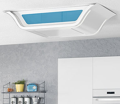breathe a living kitchen ventilation system which brings the outdoor air quality and pleasure of outdoor mealtimes into the kitchen by air ionizing technology and outdoor ambient lighting